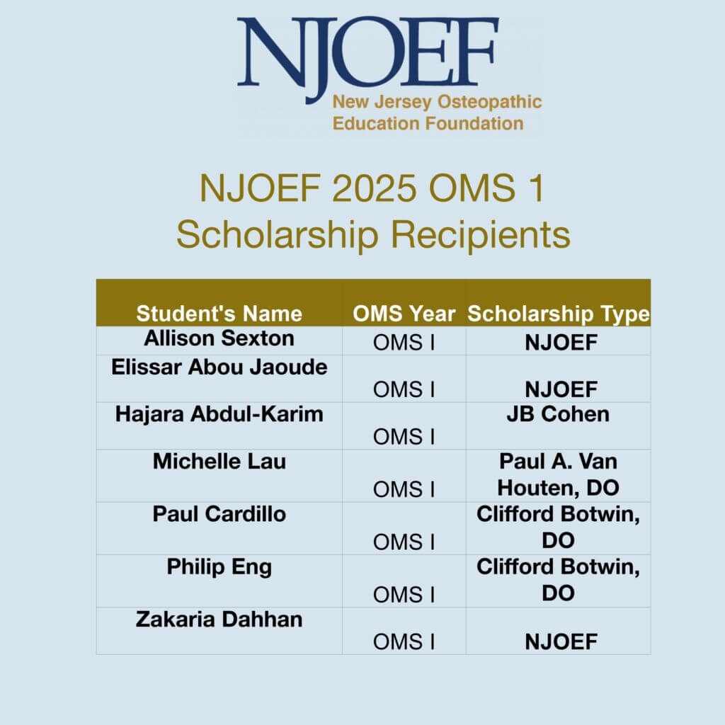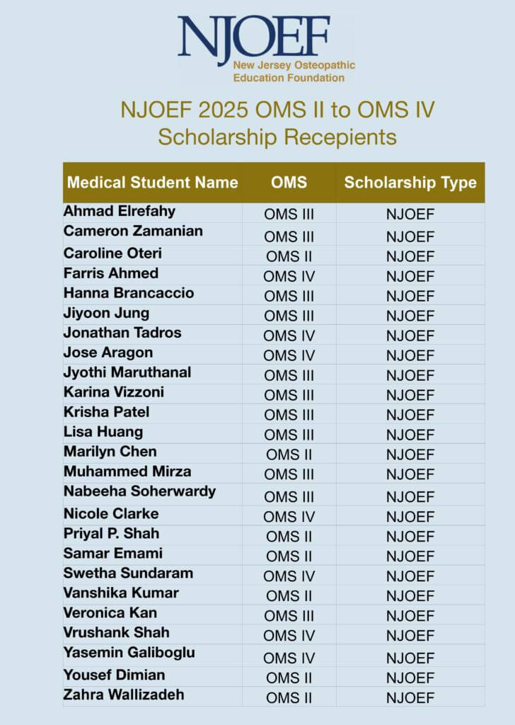 Calling All First Year Osteopathic Medical Students to Apply to NJOEF's 2025 School Year Scholarship!